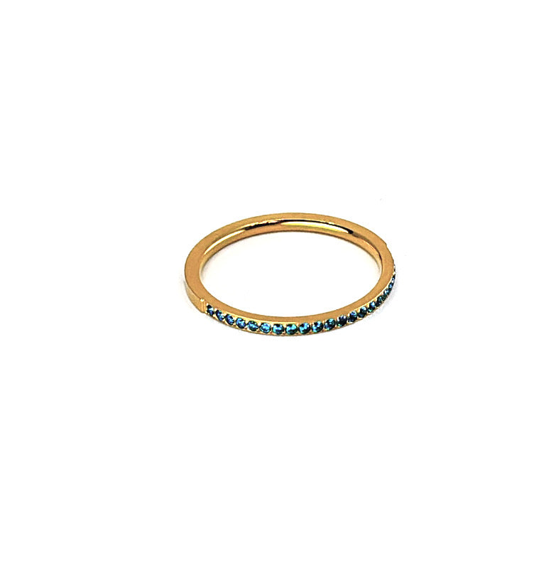 Add a touch of colour with this elegant ring, set with sparkling blue stones around the band.