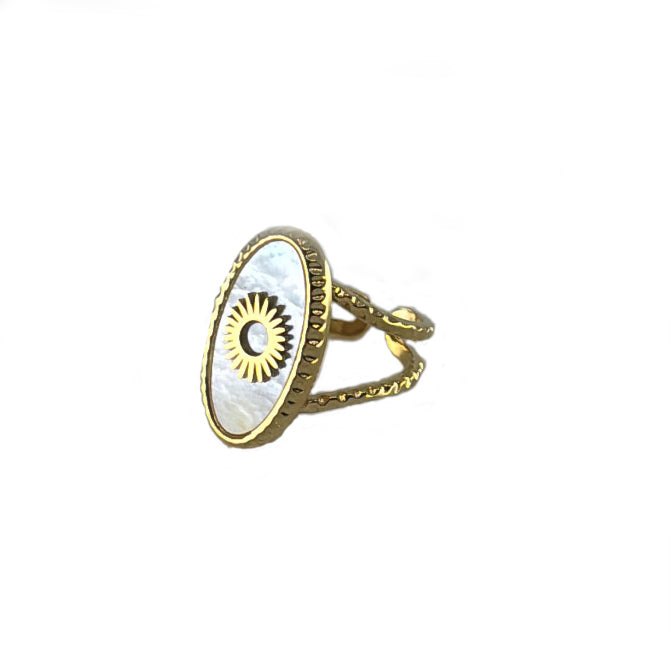 Soak up the sun with our Golden Hour Ring! This elegant ring features a unique design with a radiant sunburst at its heart, reminiscent of long summer days spent by the sea. The textured band adds a touch of rustic charm, making it the perfect accessory for your beach adventures