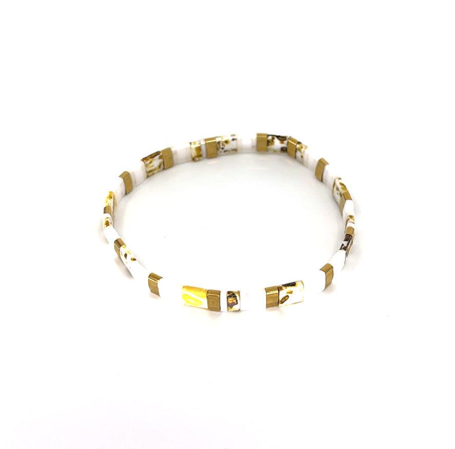 Bold and refined, the Tiger Spirit Bracelet is designed for those who embody strength and confidence. Featuring a striking mix of white, gold, and tiger-patterned accents, this sleek beaded bracelet channels the fierce energy of the tiger while maintaining an air of effortless sophistication. Its stretch design ensures a comfortable fit, making it perfect for everyday wear or layering with other pieces. Let this bracelet be your symbol of power, resilience, and untamed elegance.